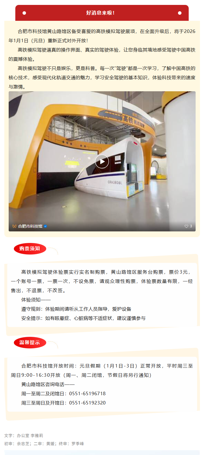 元旦启程!黄山路馆区高铁模拟驾驶1月1日重新发车!