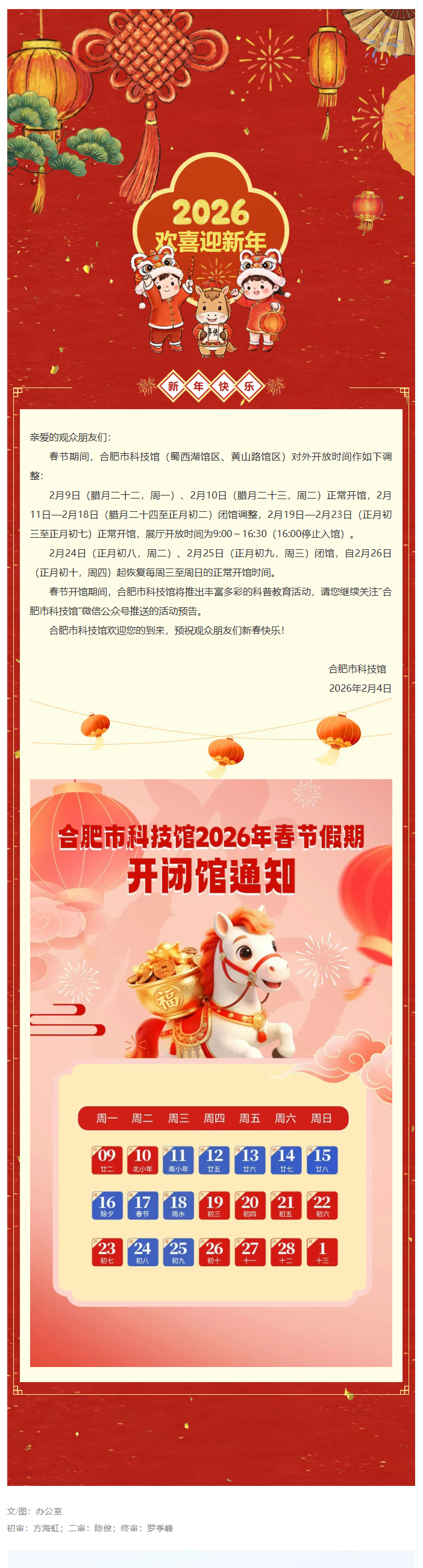 合肥市科技馆2026年春节假期开放公告