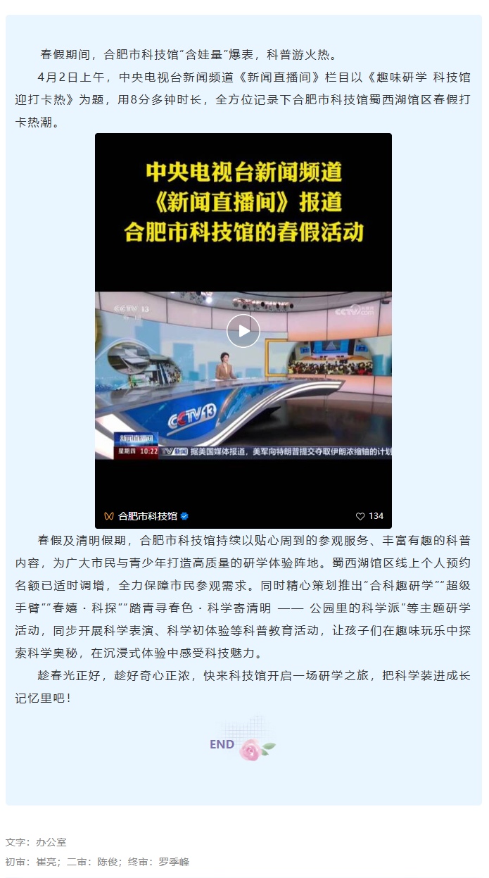 央视8分钟聚焦合肥市科技馆:趣味研学 科技馆迎打卡热
