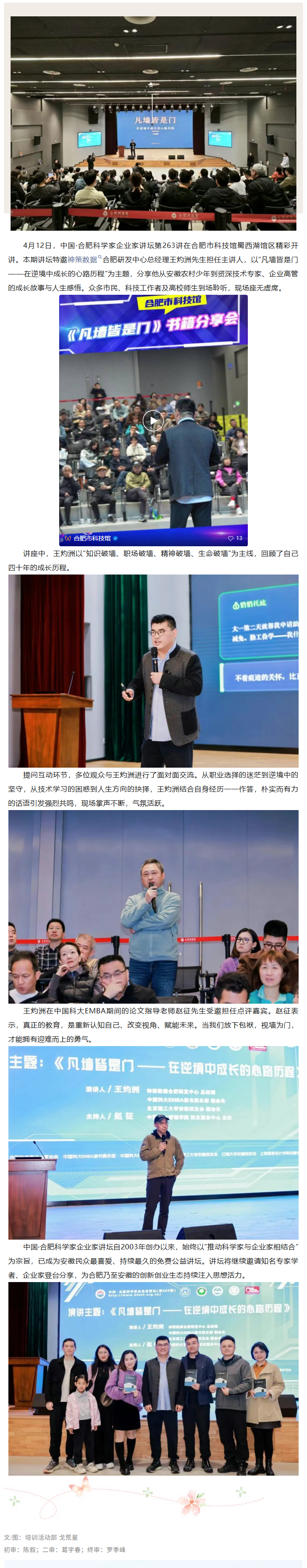 中国·合肥科学家企业家讲坛第263讲圆满落幕