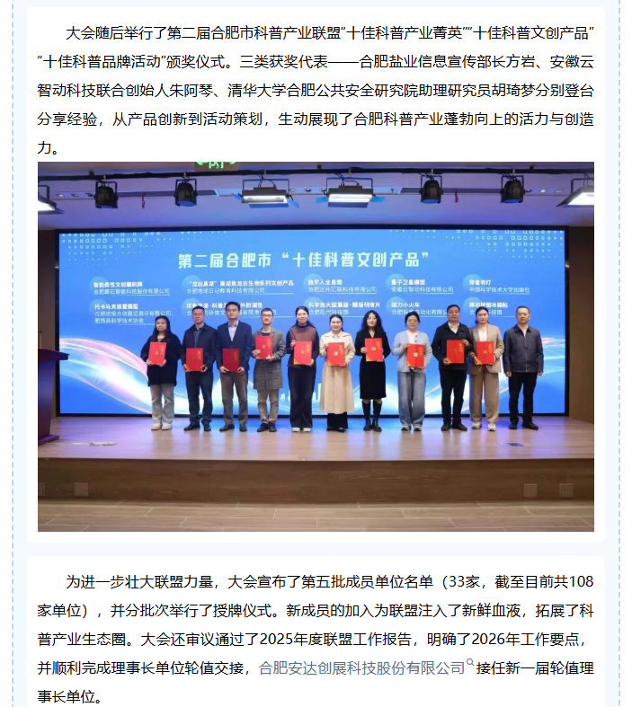 聚力科普 共创未来——合肥市科普产业联盟第五次全体成员大会成功召开