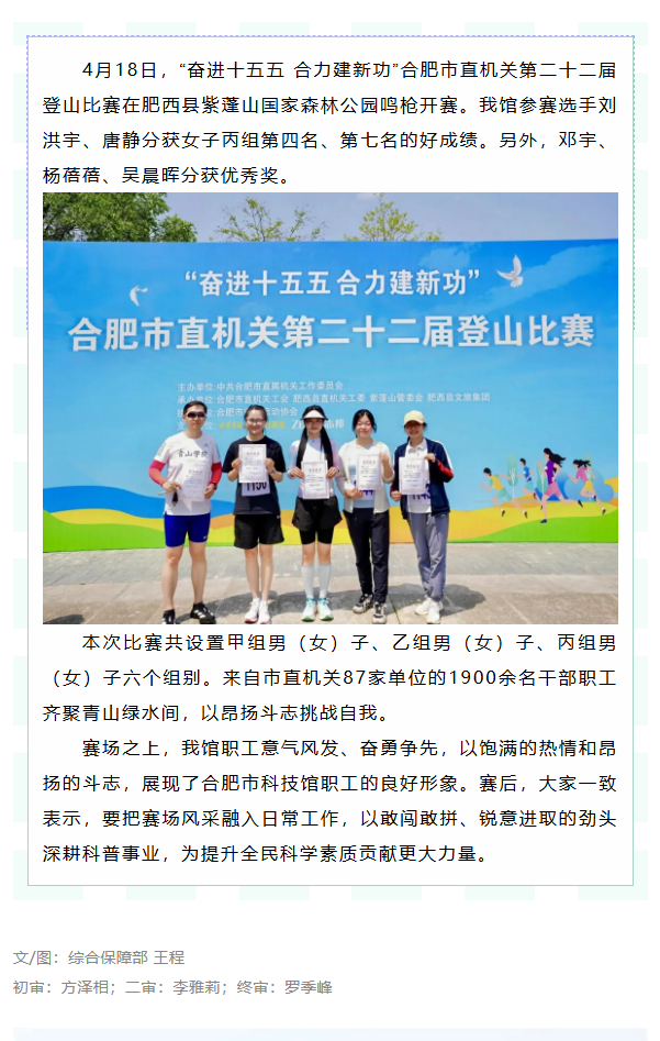 我馆职工在合肥市直机关第二十二届登山比赛中喜获佳绩